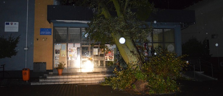 Zgłoszenia dotyczą również zerwanych linii energetycznych, połamanych gałęzi i konarów oraz powalonych drzew. Do jednego ze zdarzeń doszło w Krobi. Tam drzewo rosnące na skwerze w pobliżu kina "Szarotka" przewróciło się na zadaszenie budynku. Ponieważ nie zagraża ono obecnie niczyjemu bezpieczeństwu, strażacy usuną je w dalszej kolejności.