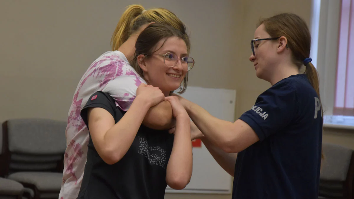 – To podstawy, które osoby w ciągu dwóch godzin zajęć były w stanie zapamiętać. Zbyt dużo informacji nie doprowadziłoby do niczego dobrego. Ważne jest poznanie jednej techniki i doprowadzenie jej do perfekcji niż 10 sposobów, które kobiety poznają tylko w 5-10% - przedstawia spósób prowadzenia zajęc starszy sierżant Szymon Przybył.