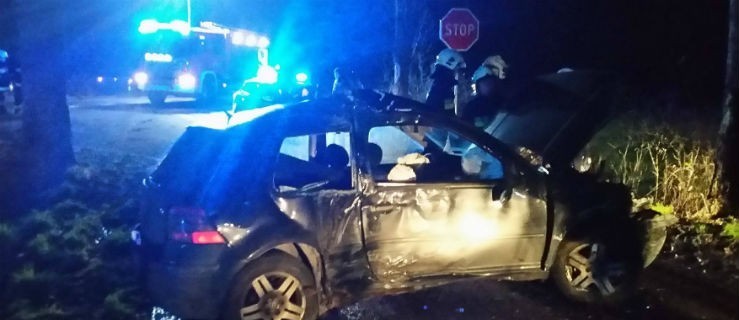 Około 21.20 na krajowej 12 zderzyły się dwa auta osobowe. Siła uderzenia była tak duża, że jedno z nich jeszcze wylądowało na drzewie.