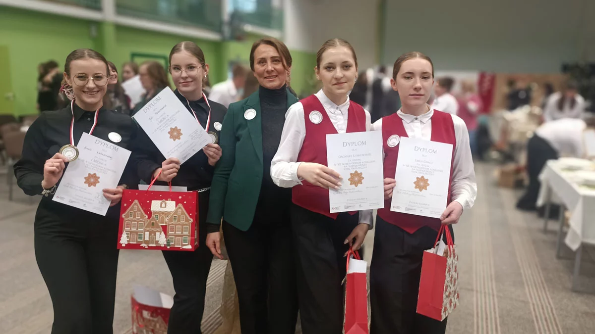 - Przyznam, że było to duże wyzwanie, któremu uczniowie sprostali. Zdobyte umiejętności pozwoliły na stworzenie spójnych, estetycznych i zgodnych z tematyką konkursu aranżacji stołów świątecznych. Kiedy podawano wyniki i okazało się, że uczennice klasy IV technikum żywienia w Grabonogu zdobyły I miejsce, były bardzo szczęśliwe. Drugi zespół, złożony z uczennic klasy III zdobył wyróżnienie. Cieszę się wraz z nimi - mówi Edyta Nowaczyk.
