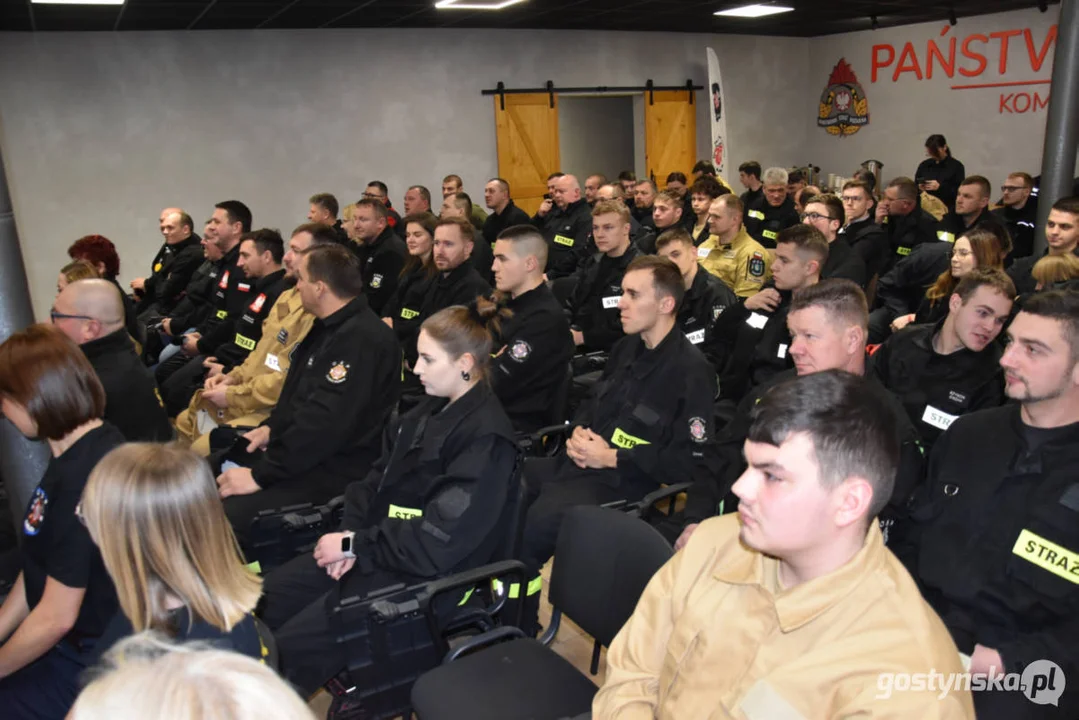 Spotkanie odbyło się w sali konferencyjnej komendy powiatowej PSP w Gostyniu. Obecni byli druhowie z jednostek OSP z powiatu gostyńskiego, którzy ukończyli kurs, ale to nie wszystko – zaproszone zostały również osoby cywilne, które również zdecydowały się wziąć udział w szkoleniu i świetnie sobie poradziły.