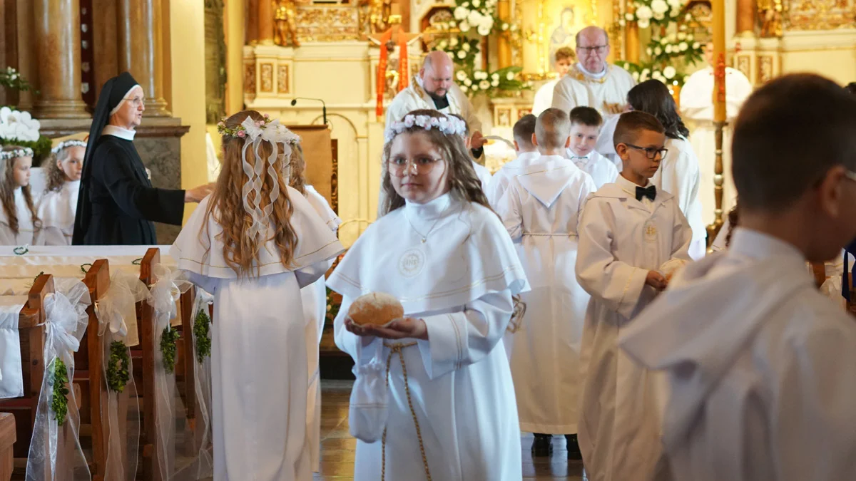 Podkreślił, że na zewnątrz to nadal jest chleb, ale po słowach kapłana staje się hostią i może go przyjąć ktoś, kto był po pierwszej komunii świętej i w stanie łaski uświęcającej po spowiedzi. Jak często? Nawet codziennie, ale co najmniej raz w tygodniu. I to jest rola rodziców, chrzestnych i dziadków, by o obecność dzieci w kościele zadbać nie tylko w tzw. Białym Tygodniu.