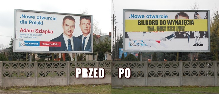 Podkreślali, że „przestarzałe” materiały wyborcze szpecą miasto. Przepisy ordynacji wyborczej mówią, że plakaty i hasła wyborcze oraz urządzenia ogłoszeniowe ustawione w celu prowadzenia kampanii wyborczej, powinny zostać usunięte w terminie 30 dni po dniu wyborów. Obowiązek ten ciąży na pełnomocnikach komitetów wyborczych. A zatem ogromny baner posła Adama Szłapki powinien zniknąć jeszcze w listopadzie 2015 r.
