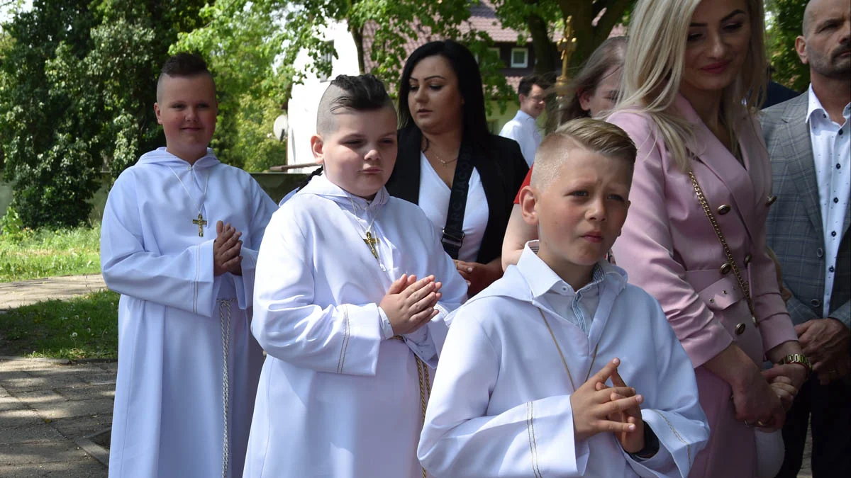 Wspominamy wydarzenie z wczesnego dzieciństwa, gdy byliście ochrzczeni. Wtedy - w czasie chrztu - na czole każdego z was uczynili znak krzyża - pobłogosławili was. I dzisiaj na początku uroczystości I Komunii Świętej rodzice również uczynią na waszym czole znak krzyża świętego - powiedział kapłan, a wówczas dzieci odwróciły się w stronę rodziców i poprosiły o błogosławieństwo.