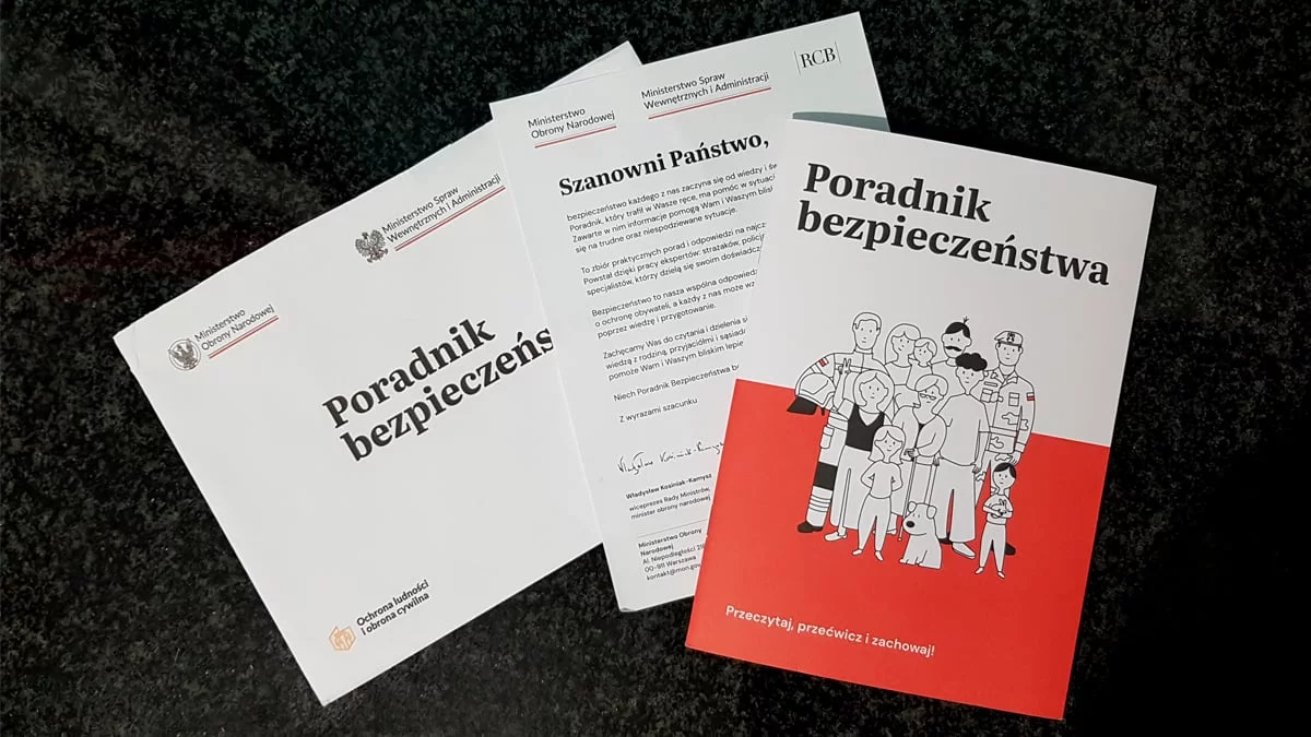 „Poradnik bezpieczeństwa” to broszura, 52-stronicowa książeczka, z czego okładki przeznaczono na publikacje numerów alarmowych i tzw. dekalogu bezpieczeństwa, natomiast ostatnie strony przeznaczono na tzw. plan na kryzys. Inaczej mówiąc kompendium wiedzy, uzupełnione praktycznymi poradami, które powinno pomóc obywatelom przygotować się na różnorodne zagrożenia: od cyberataków i dezinformacji, przez klęski żywiołowe, aż po sytuacje kryzysowe o charakterze militarnym czy infrastrukturalnym.
