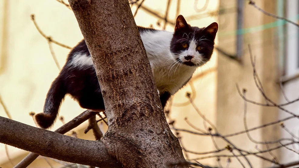 Kot poszukiwany. Znaki szczególne: czarno-białe umaszczenie. A co z mężczyzną, który z długiej broni celował do kota?