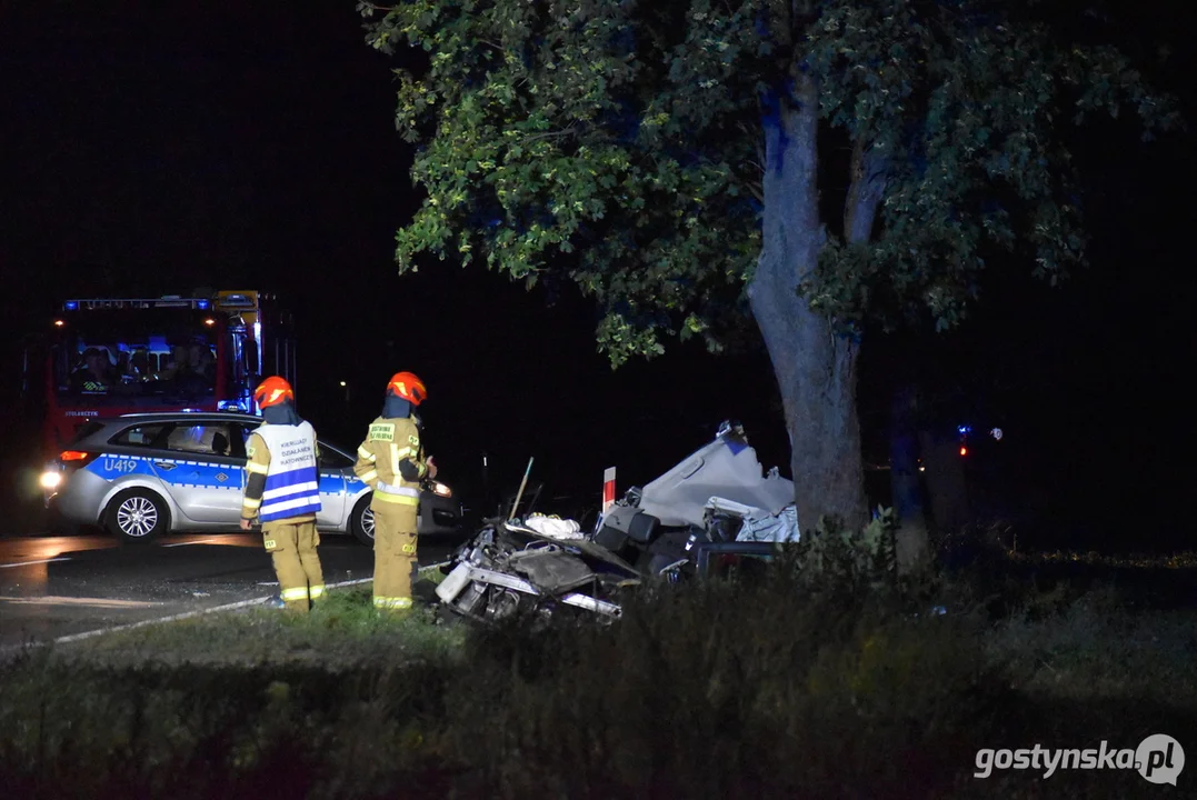 Do wypadku, w którym samochód osobowy uderzył w drzewo, doszło na DW434, pomiędzy miejscowościami Kuczyna a Przyborowo. Zgłoszenie, które dotarło do Komendy Powiatowej Państwowej Straży Pożarnej w Gostyniu, mówiło o dwóch osobach uwięzionych w pojeździe.Według niepotwierdzonych informacji, auto miało wyprzedzać rowerzystę, zjechać na pobocze i uderzyć w drzewo.
