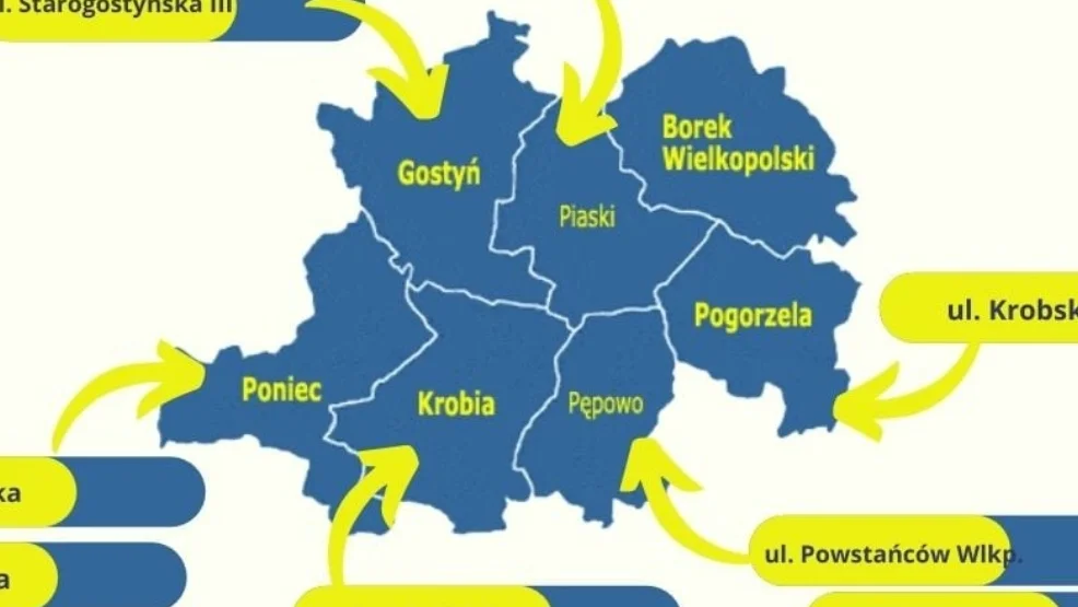W grudniu ubiegłego roku władze samorządu powiatowego podpisały umowę na wykonanie zadania w ramach, którego powstaną m.in. przejścia aktywne, linie wibrujące i odnowa oznakowania poziomego. Ponadto na przejściu dla pieszych na ulicy Kobylińskiej w Krobi zamontowana zostanie sygnalizacja świetlna. Z kolei w Łęce Wielkiej, gmina Ponieca, na ul. Powstańców Wlkp. w Pępowie, oraz w Wilkonicach robotom towarzyszyć będzie również budowa lub przebudowa chodnika.