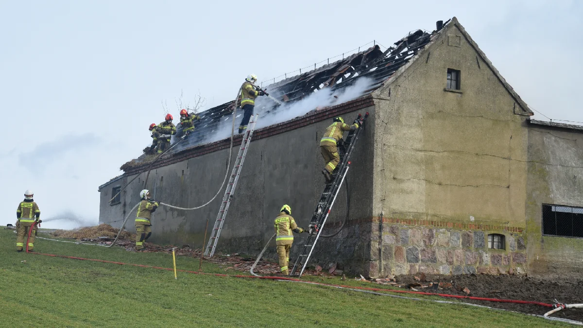 Strażacy zabezpieczyli teren działań oraz zweryfikowali odłączenie prądu w budynku. Następnie przystąpili do gaszenia pożaru. Sytuacji nie ułatwiał fakt, że w stodole znajdowała się spora ilość słomy oraz drewno opałowe.