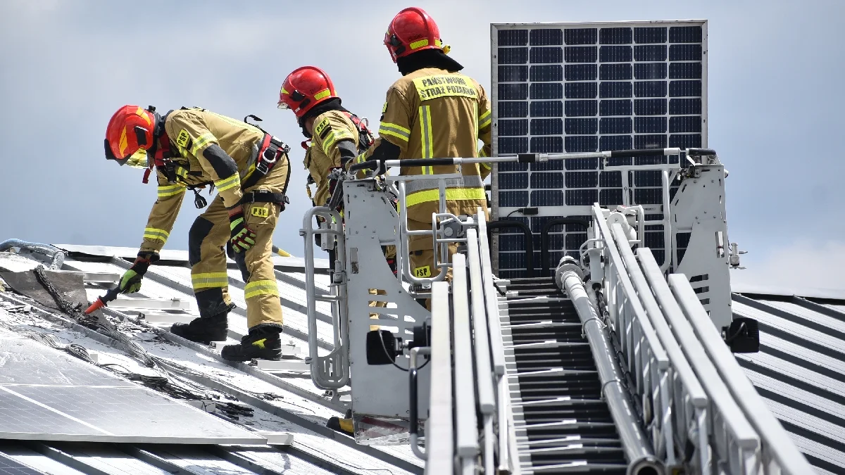 Ogień pojawił się w instalacji złożonej z kilkudziesięciu paneli. Ze zrozumiałych względów w trakcie akcji ratownicy nie mogli użyć wody.