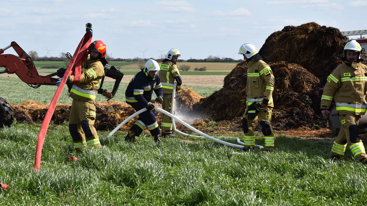 Po godzinie pożar był opanowany. Jednak, by mieć całkowitą pewność co do skuteczności działań, strażacy rozgarnęli tlącą się pryzmę obornika i asekuracyjnie podali na nią prąd wody, żeby nie doszło do ponownego rozpalenia.