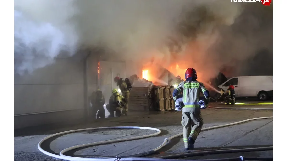 Strażacy z Gostynia gaszą pożar w Rawiczu
