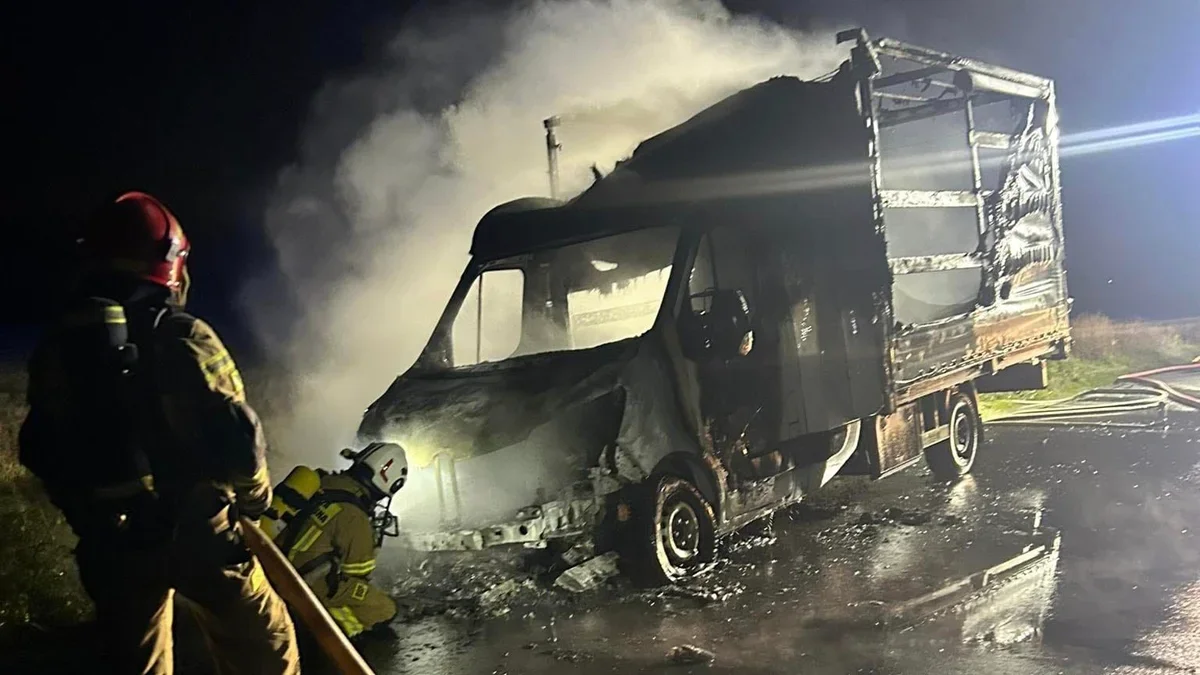 Po przybyciu na miejsce zdarzenia strażacy ujrzeli pojazd całkowicie objęty ogniem. Podali jeden prąd piany ciężkiej na palący się obiekt. To wystarczyło by ugasić pożar.
