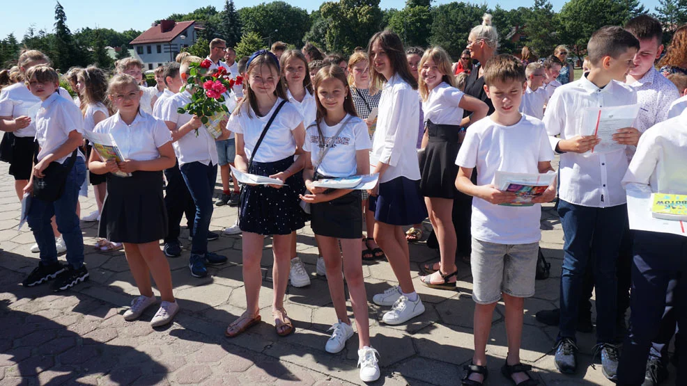 Po ponad dwóch latach różnych zawirowań związanych z lockdownami, pandemią i kwarantanną dzieci w Szkole Podstawowej z Oddziałami Integracyjnymi im. Mikołaja Koprenika w Piaskach nareszcie mogły tradycyjnie zakończyć rok szkolny 2021- 2022 r. Uczniowie wraz z wychowawcami i liczna grupą rodziców zgromadzili sie przed głównym wejściem do szkoły, by wziąć udział w uroczystym apelu.