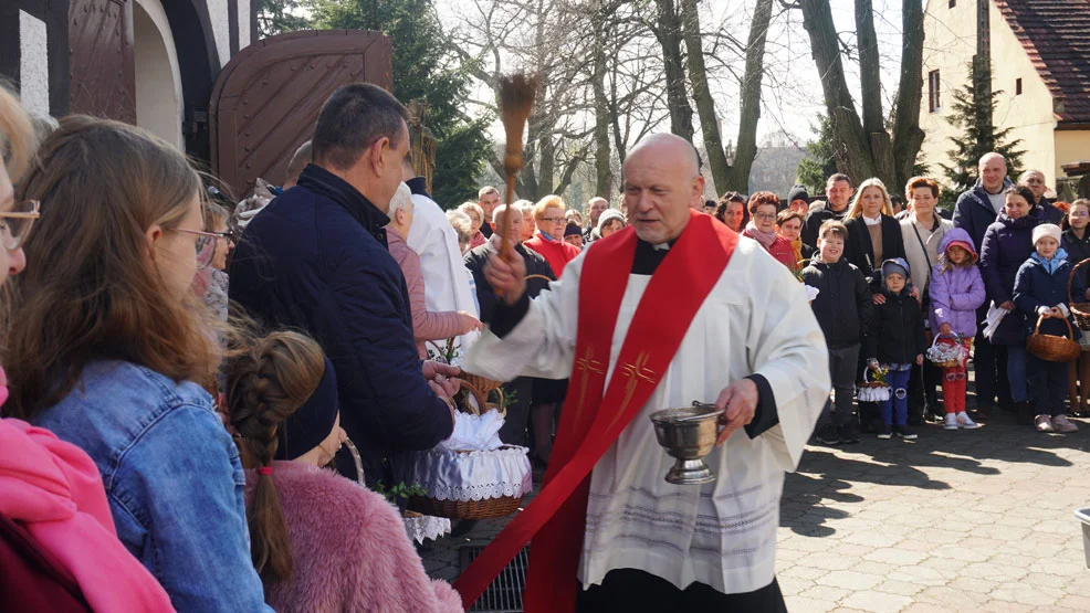 Proboszcz piaskowskiej parafii, ks. Rafał Jarmuż po krótkiej modlitwie poswięcił przyniesione pokarmy i życzył wszystkim wesołych świąt i radości ze Zmartwychwstania Jezusa.