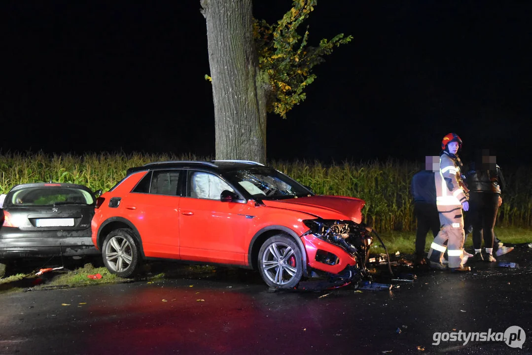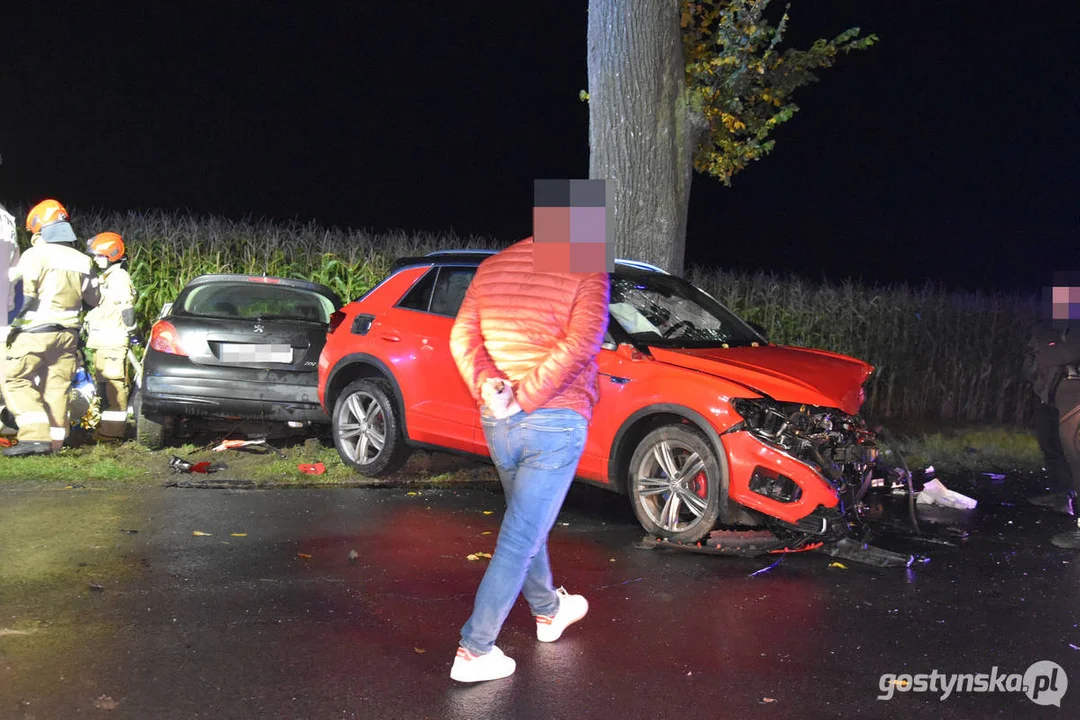 Czynności wyjaśniające okoliczności i przyczynę wypadku w Rębowie prowadzili funkcjonariusze wydziału ruchu drogowego KPP w Gostyniu. Okazało się, że jeden samochód wyjeżdżał od strony Ludwinowa na drogę główną, którą prawidłowo poruszało się auto marki Peugeot - kierował się z Gostynia do Pępowa. Prowadząca volkswagena źle rozpoznała sytuację i pojawiła się na drodze, w tym momencie w pojazd z impetem uderzył peugeot. Siła spowodowała, że samochód musnął drzewo i uszkodził znak drogowy.