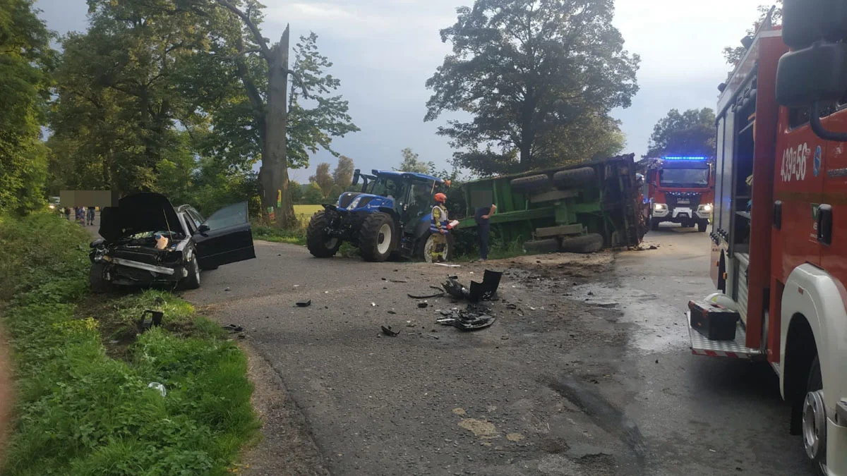Na drodze pomiędzy Pogorzelą a Borzęciczkami kierujący samochodem marki Audi zderzył się z ciągnikiem rolniczym. Na miejsce wezwano służby: straż pożarną, zespół ratownictwa medycznego oraz policję.