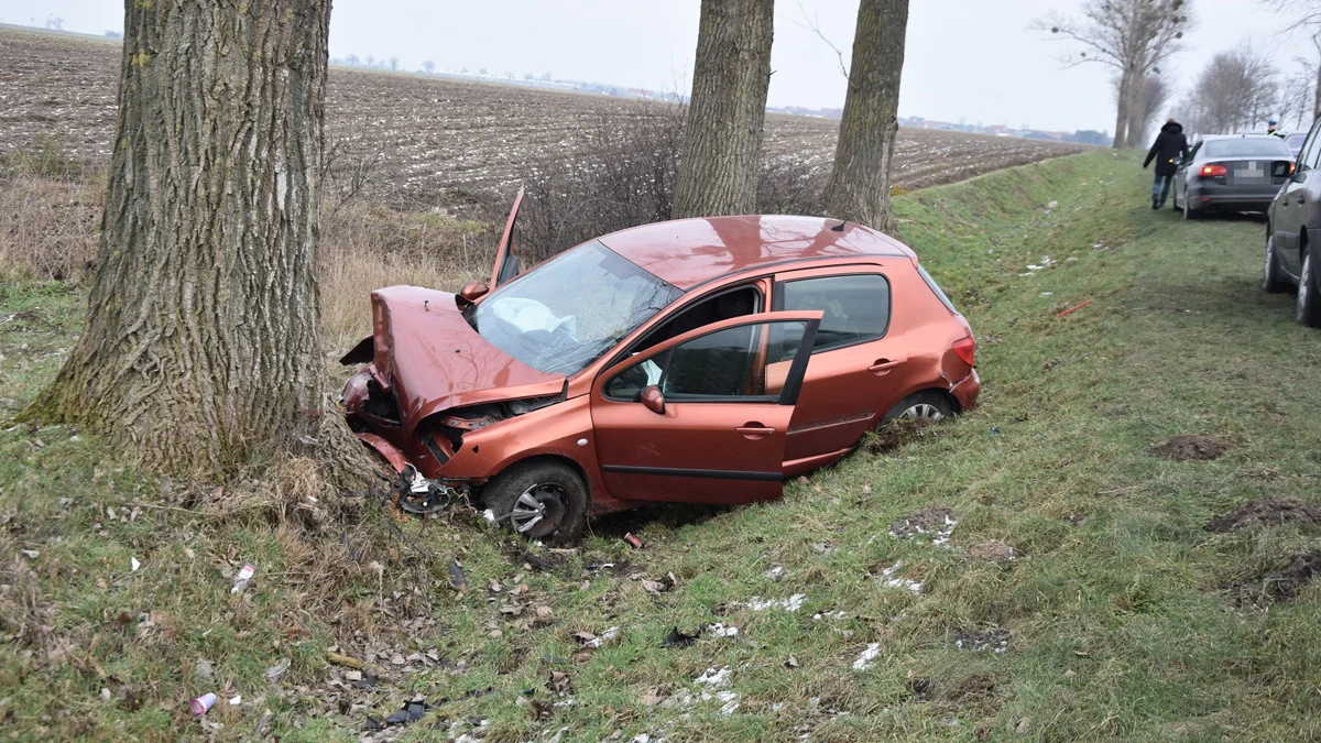 Skutek był taki, że peugeot zjechał z drogi i uderzył przodem w przydrożne drzewo. Z maski niewiele pozostało, niektóre elementy samochodu rozrzucone były po polu. Na miejsce wezwano służby. Przyjechały wozy straży pożarnej (1 zastęp z OSP Piaski i 2 JRG Gostyń). Kierowca peugeota był przytomny. Z samochodu, który zatrzymał się na drzewie, wyszedł z auta o własnych siłach.