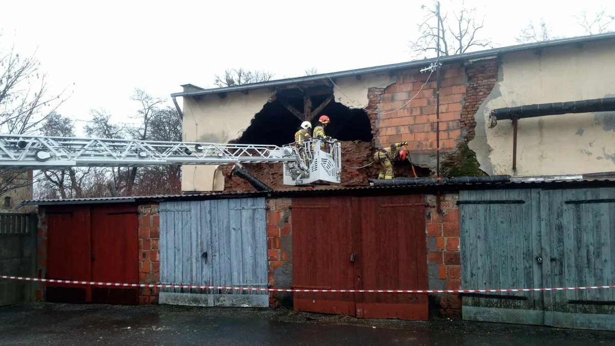 Ściana dawnej stajni runęła na dach garażu