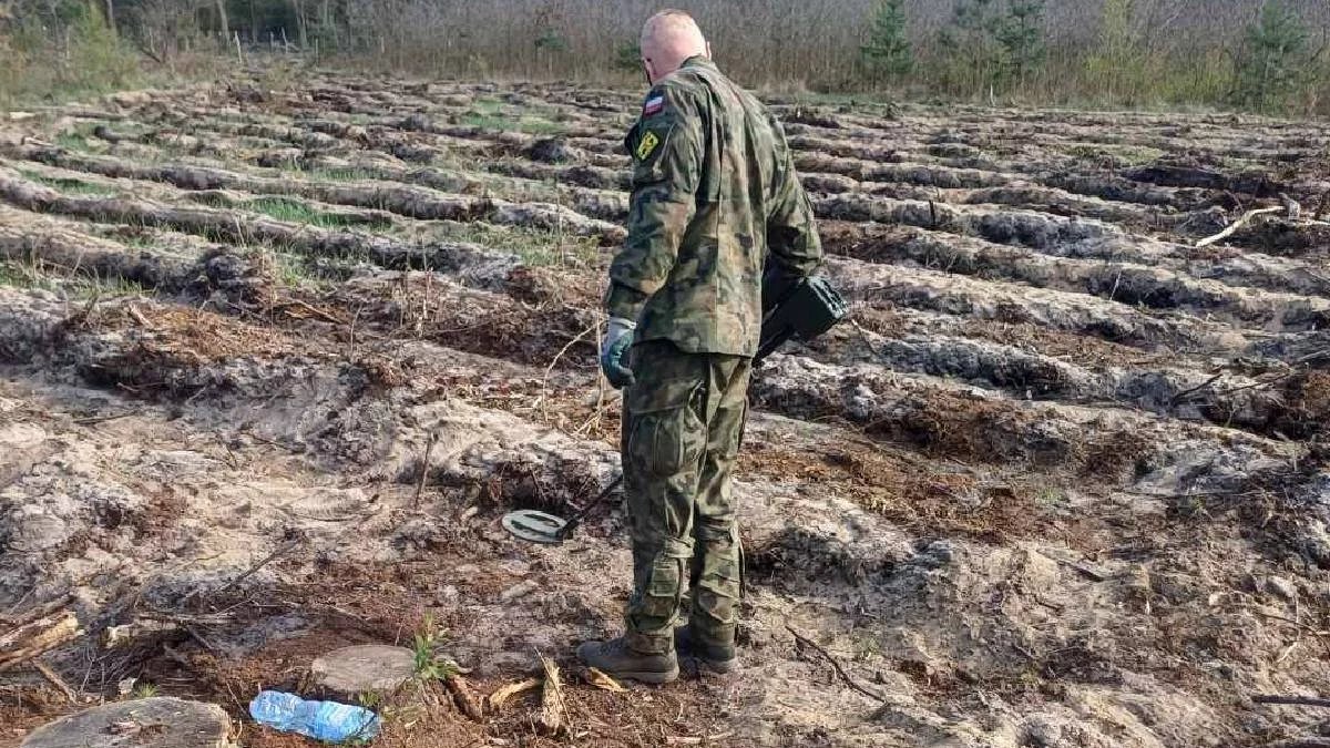 Obecnie wykonywane są nasadzenia młodego pokolenia plasu podczas których pracownik leśny natrafił na niewybuch.