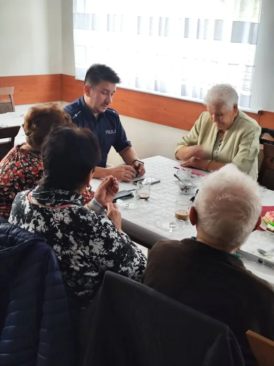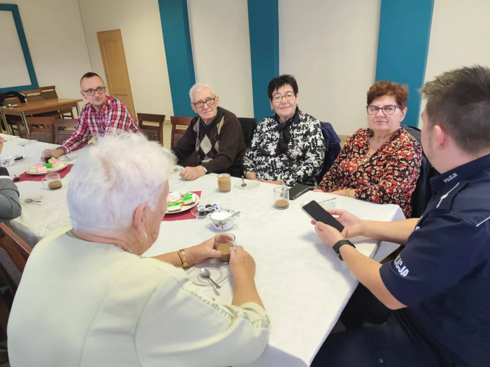 Tak się złożyło, że przyszła tylko garstka reprezentantów starszego pokolenia z wioski. Ci którzy zdecydowali się uczestniczyć w spotkaniu z przedstawicielami policji, straży miejskiej i zespołu ratownictwa medycznego, byli usatysfakcjonowani. Mł. asp. Marek Balczyński w rozmowie z seniorami poruszył temat zagrożeń związanych z oszustwami oraz cyberprzestępczością, na które szczególnie narażone są osoby starsze.