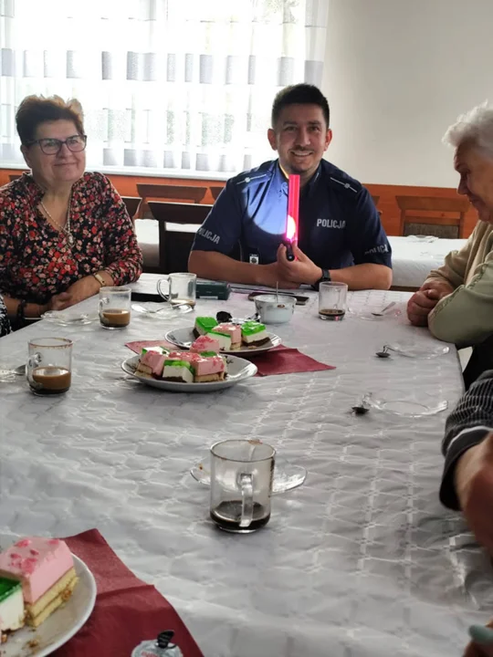 Zostałem poproszony przez sołtysa, żeby porozmawiać o cyberbezpieczeństwie. W tej chwili jest to jedno z głównych i poważnych zagrożeń, które najbardziej dotyczy seniorów. Ale też o bezpieczeństwie w ruchu drogowym. Zbliża się okres jesienno-zimowy, wcześniej zapada zmrok. Chodzi o to, żeby przestrzegać seniorów i uświadomić, dlaczego warto nosić odblaski. Przekonać, żeby spacerowali prawidłową stroną jezdni - powiedział mł. asp. Marek Balczyński.
