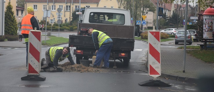 Od tygodnia przy znajdujących się w tym miejscu kratkach ściekowych zapadał się asfalt. W piątek przed południem, na zlecenie gostyńskiego urzędu miejskiego, zewnętrzna firma sprawdzała, co jest powodem uszkodzenia nawierzchni drogi. Pracownicy mieli również za zadanie naprawić usterkę. Pachołki zabezpieczają miejsce naprawy.