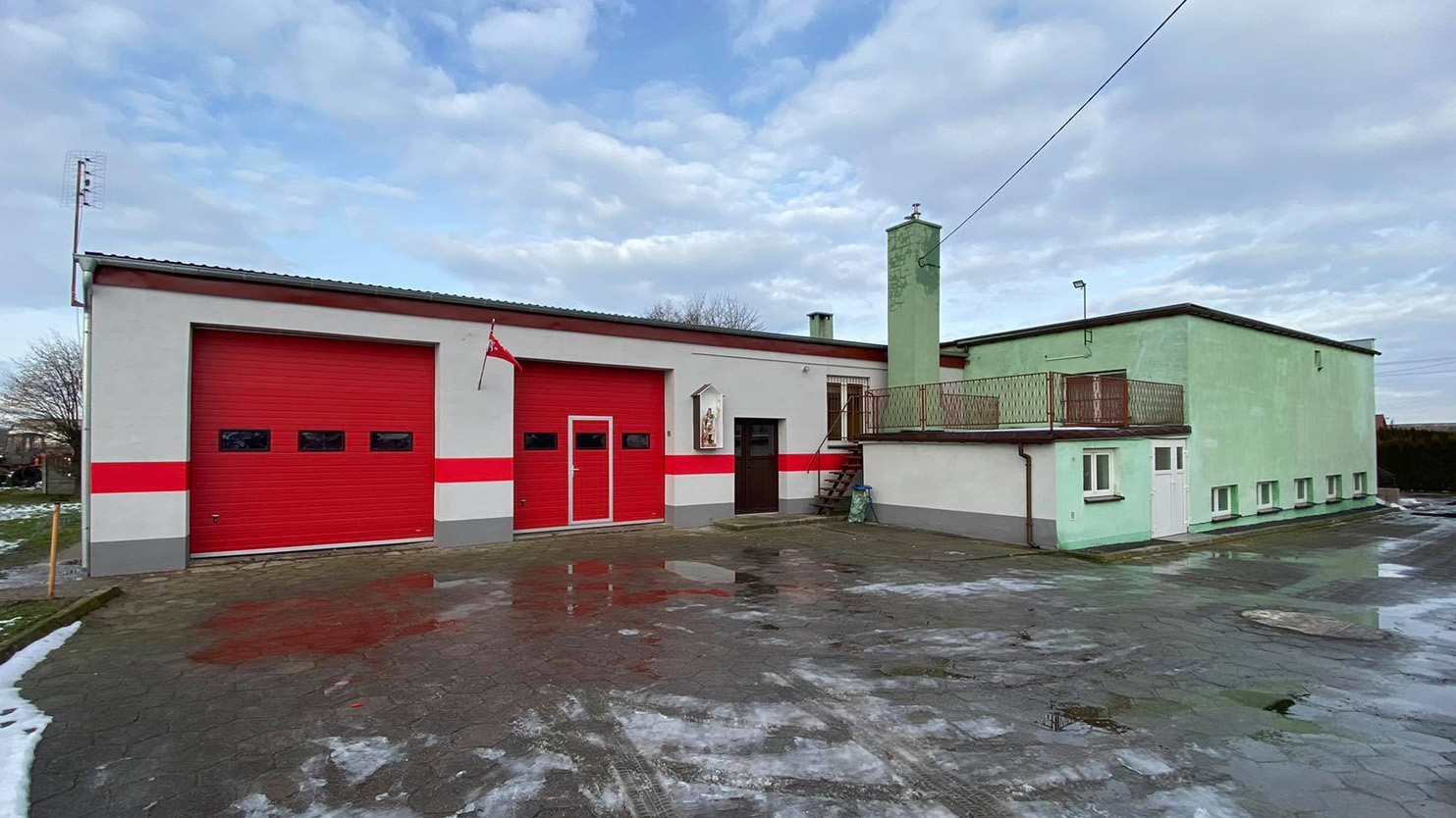W ubiegłym roku udało się przeprowadzić dalsze remonty. Skupiono się na wyglądzie zewnętrznym budynku. Odmalowano elewację, bramy, naprawiono część dachu, zamontowano figurę św. Floriana, która od lat czekała na ten moment.