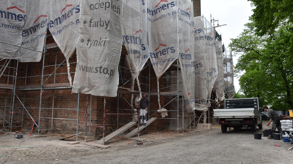 - Wyszło to po odsłonięciu przybudówek z klinkieru. Odsłonięty fragment jest w bardzo złym stanie, cegła jest zmurszała, osypuje się. Nie ma za bardzo czego eksponować. Zdecydowaliśmy się pójść w kierunku, że przymurujemy to dostosowaną cegłą na wapiennej zaprawie, ręcznie formowaną o wymiarach zbliżonych do oryginału, żeby wszystko wytrwało - wyjaśnia konserwator zabytków.