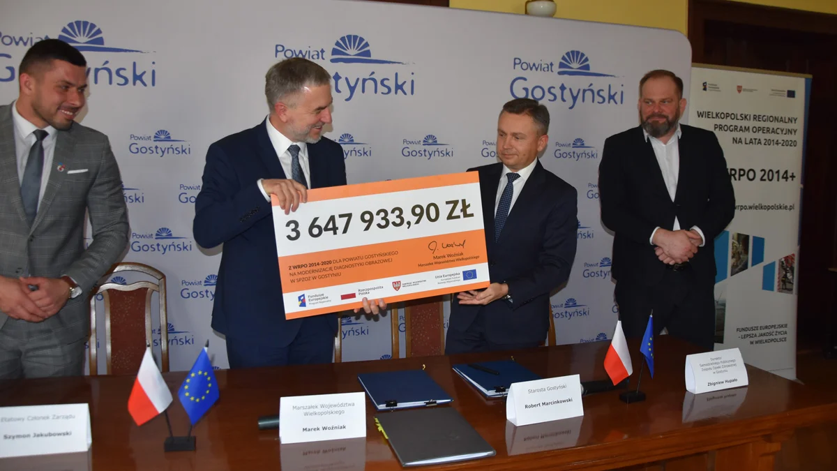 W Gostyniu umowę na realizację zadania podpisał marszałek województwa wielkopolskiego oraz starosta Robert Marcinkowski i etatowy członek zarządu powiatu, Szymon Jakubowski.