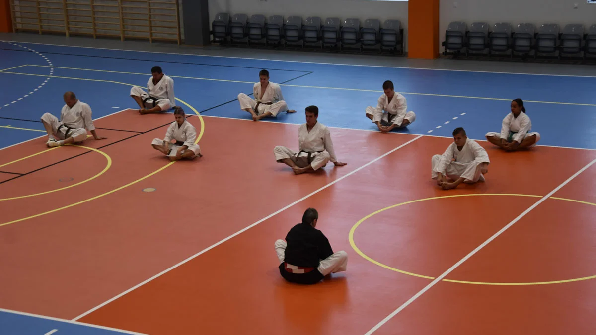 Robert Marcinkowski zwrócił uwagę między innymi na kilka nowoczesnych rozwiązań technicznych zastosowanych przy budowie hali sportowej, które niekoniecznie są widoczne dla oka, ale za to są bardzo praktyczne. Włodarz powiatu wskazał na przykład na wyjątkową jakość podłogi (karatecy po treningu to potwierdzają). Została ona wykonana według bardzo wysokich standardów na specjalnym, drewnianym ruszcie, dodatkowo ma też certyfikat Międzynarodowej Federacji Piłki Siatkowej.