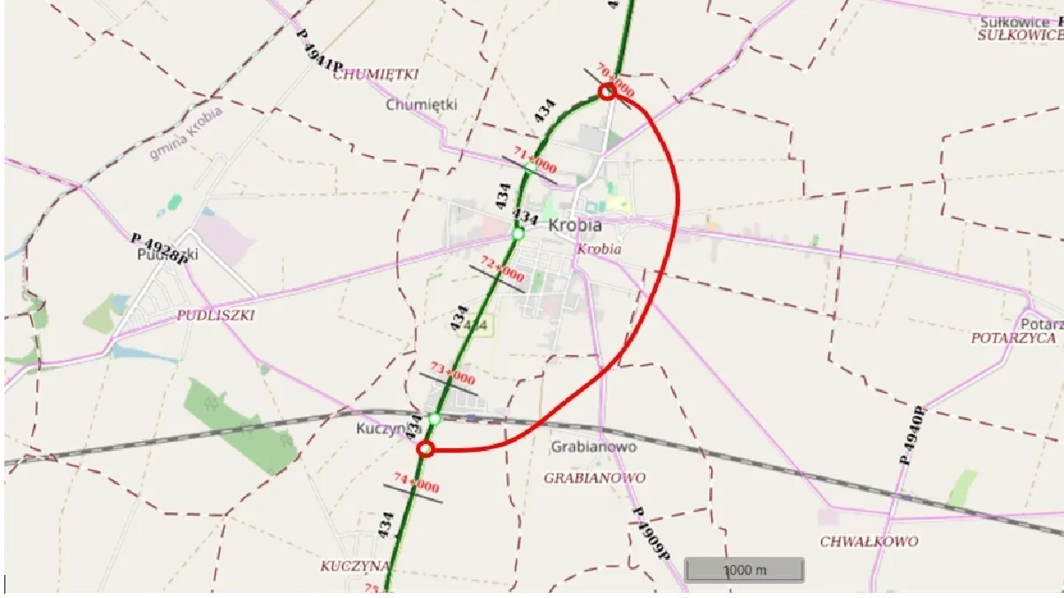 Jednakże projektanci będą starali się, aby obwodnica Krobi nie zostałą wytyczona zbyt daleko na wschód. Dlaczego?