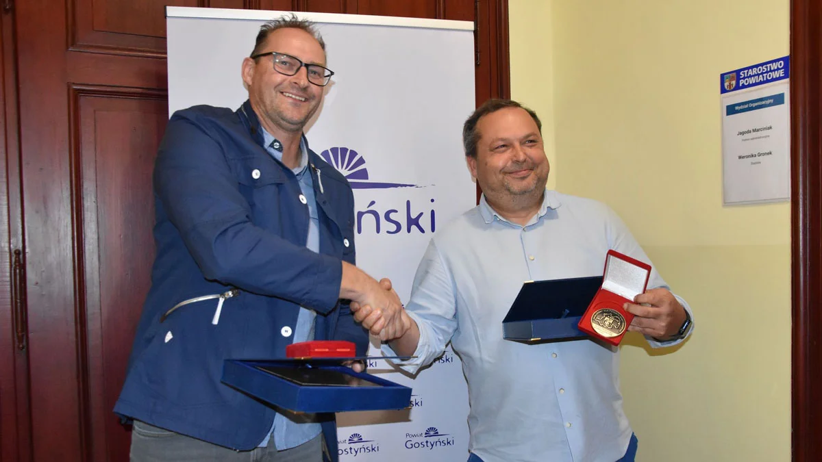 W tym momencie obecni na sesji powstali, a Dariusz Michalski z zarządu klubu piłki nożnej oraz Tomasz Poznański, prowadzący sekcję piłki siatkowej otrzymali do rąk akt nadania tytułu „Zasłużony dla Powiatu Gostyńskiego”. Wygrawerowane medale działaczom MKS Kania Gostyń, w obecności radnych oraz gości, wręczali starosta Robert Marcinkowski oraz przewodniczący Rady Powiatu Gostyńskiego, Damian Walczak.