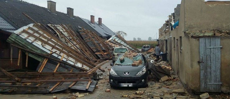 Dach z budynku gospodarczego spadł na szereg domków jednorodzinnych i poważnie je uszkodził. Na miejsce przyjada strażacy, będą zabezpieczać domy. Pięć rodzin czeka na pomoc.