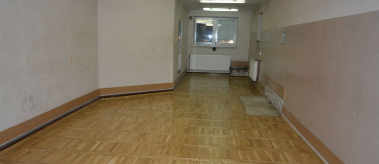 Zburzono jedną ze ścian. Wycyklinowano mocno zniszczony parkiet. W pozyskanej przestrzeni na ścianie zawieszone będą lustra. Ustawiona będzie tam bieżnia i rower.