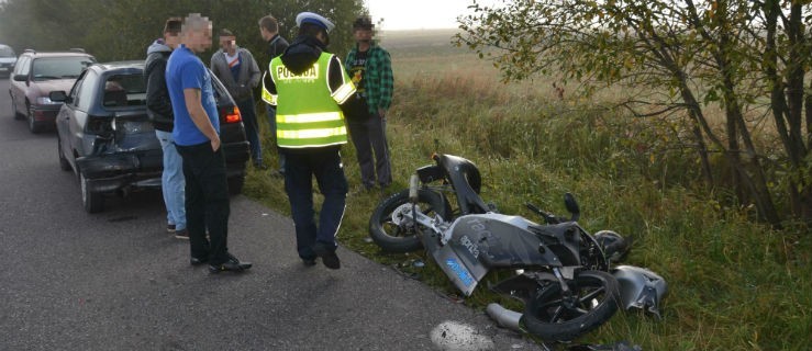 W godzinach porannych doszło dziś do zdarzenia na drodze pomiędzy Brzeziem a Czajkowem, gmina Gostyń. - Z relacji świadków wynika, że kierujący motorowerem, nadjeżdżając od strony miejscowości Czajkowo w kierunku Gostynia, nie dostosował prędkości do warunków drogowych. Zbyt późno dostrzegł pojazd będący przed nim, nie zdążył wyhamować i doprowadził do tylnego zderzenia - mówił młodszy aspirant Henryk Grabny z KPP w Gostyniu.