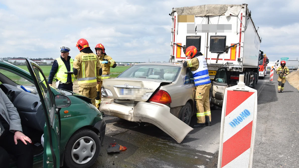 - Po przybyciu i wstępnych oględzinach wiedzieliśmy, że w pojazdach jechały 4 osoby. Samochód osobowy marki Daewoo uderzył w toyotę. Siła uderzenia spowodowała, że toyota się przemieściła i uderzyła w belkę pojazdu ciężarowego scania z naczepą – informował na miejscu zdarzenia asp. sztab. Sebastian Kasperkowiak, dowódca zmiany JRG Gostyń, który kierował działaniami ratowniczymi.