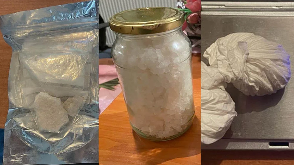 Policjanci z pionu kryminalnego gostyńskiej jednostki, zajmujący się zwalczaniem przestępczości narkotykowej, trafili na trop 31-letniego mieszkańca powiatu gostyńskiego, wobec którego mieli przypuszczenia, że posiada substancje psychotropowe. Funkcjonariusze postanowili zweryfikować posiadane informacje i dokładnie sprawdzić wszelkie ślady prowadzące do podejrzanego. W domu mężczyzny zostały znalezione znaczne ilości metamfetaminy, które 31-latek ukrył w słoikach. Jeden z nich schował w szafie na odzież, a drugi w specjalnie do tego przygotowanym schowku pod meblami. Kolejne porcje narkotyków, zawinięte w papier i folię ukrywał w kieszeni spodni. Łącznie zabezpieczono 1,1 kg metamfetaminy, z której można było wyprodukować prawie 4,5 tys. porcji dilerskich.