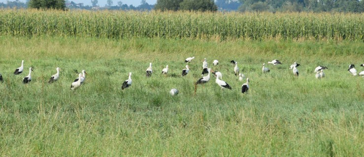 Stado bocianów odpoczywało na gostyńskich łąkach.
