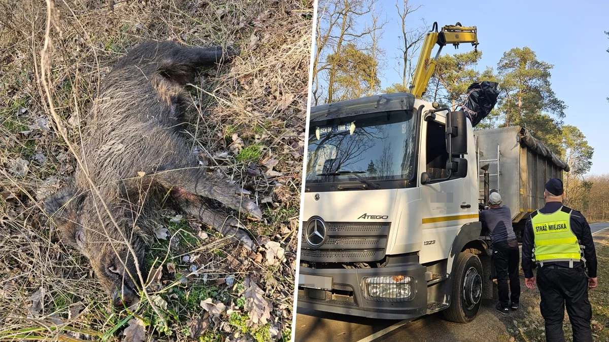 Patrol Straży Miejskiej w Gostyniu otrzymał w sobotę zgłoszenie o martwym dziku. Zwierzę, prawdopodobnie ofiara wypadku komunikacyjnego czy drogowej kolizji, leżało w lesie przy drodze w kierunku Starego Gostynia.