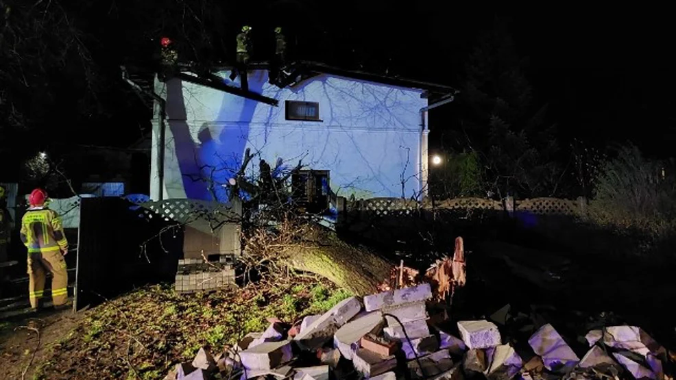 W Krobi drzewo przewróciło się na budynek mieszkalny. Wieje silny wiatr