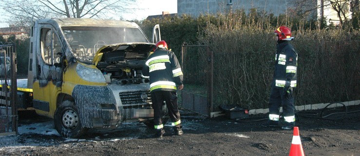 Samochód dostawczy fiat ducato zapalił się w podgostyńskiej wiosce Brzezie.