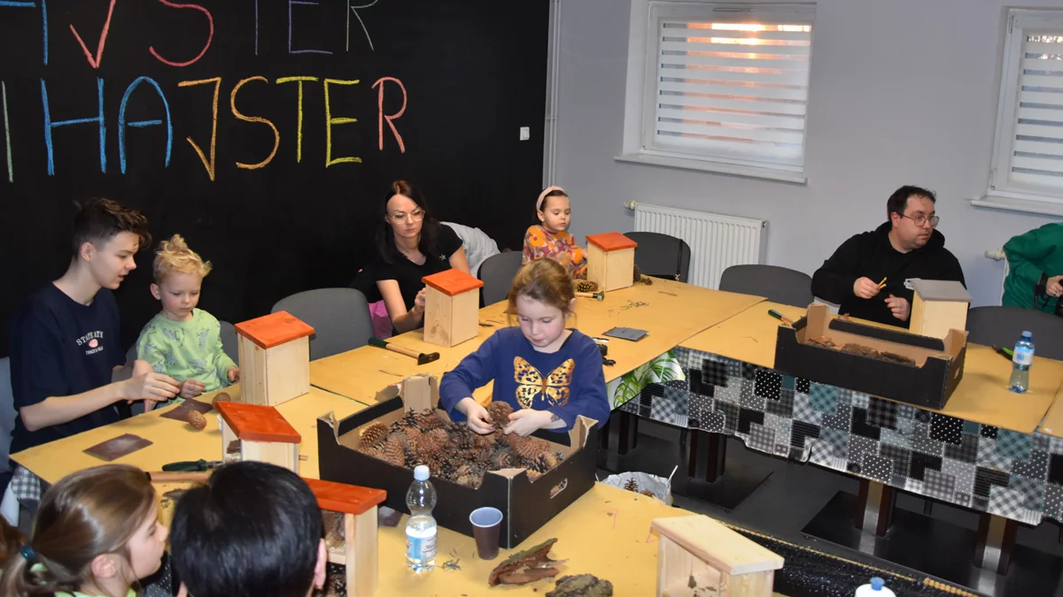 W niewielkiej sali, która zamieniła się w „pracownię stolarską” było trochę pyłu, sporo hałasu, ale uczestnicy przede wszystkim mieli mnóstwo satysfakcji z efektów pracy. Swoje dzieła mogli zabrać do domu, powiesić na ogrodzie, na balkonie, w zależności od tego, gdzie mieszkają. Dyrektor przygotował instruktaż dla majsterkowiczów, czyli wytyczne, w jaki sposób wykorzystywać wykonane dzieło z pożytkiem dla przyrody, środowiska czy też po prostu dla domu.