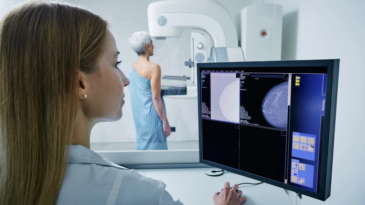 Podczas badania pierś układana jest na małej podstawce i dociskana plastikową płytką od góry oraz z boku, co pozwala uzyskać dwa obrazy. Ucisk ten trwa zaledwie kilka sekund.