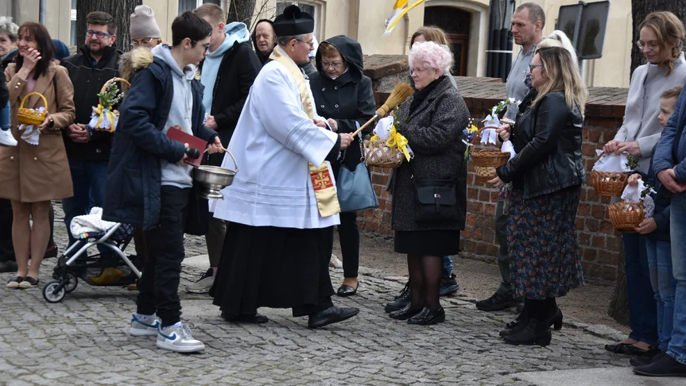 W gostyńskiej farze, podobnie jak w kościele pw. Ducha Świętego, obrzęd święcenia pokarmów, które w Wielką Niedzielę parafianie będą spożywać podczas śniadania wielkanocnego, odbywał się na placu przy kościele. Słoneczna pogoda sprzyjała.