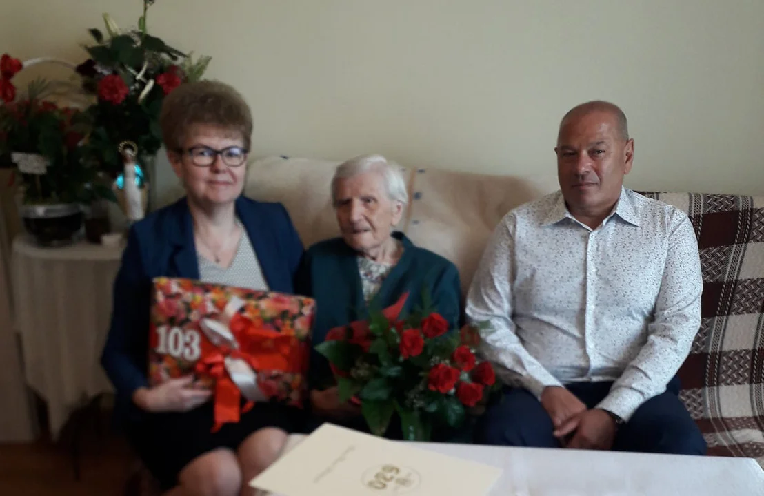 Jubilatka otrzymała życzenia dużo zdrowia, nieustającej pogody ducha na kolejne lata, a także samych szczęśliwych chwil w gronie najbliższych. Marek Rożek, na ręce pani Stanisławy przekazał bukiet kwiatów, list gratulacyjny oraz upominek.
