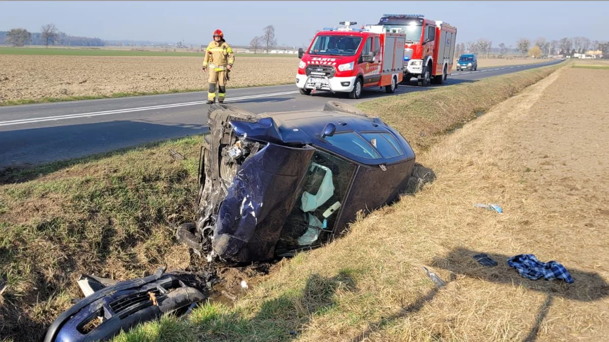 50-letni kierowca volkswagena (na rawickich rejestracjach) był przytomny, jednak wciąż tkwił w aucie. Jak informuje dyżurny KP PSP w Gostyniu, mężczyzna nie był zakleszczony, jednak nie miał siły wyjść zza kierownicy, gdyż samochód leżał na boku. Pomogli strażacy, którzy udzielili kierowcy pomocy przedmedycznej, po czym przekazali poszkodowanego w ręce zespołu ratownictwa medycznego.