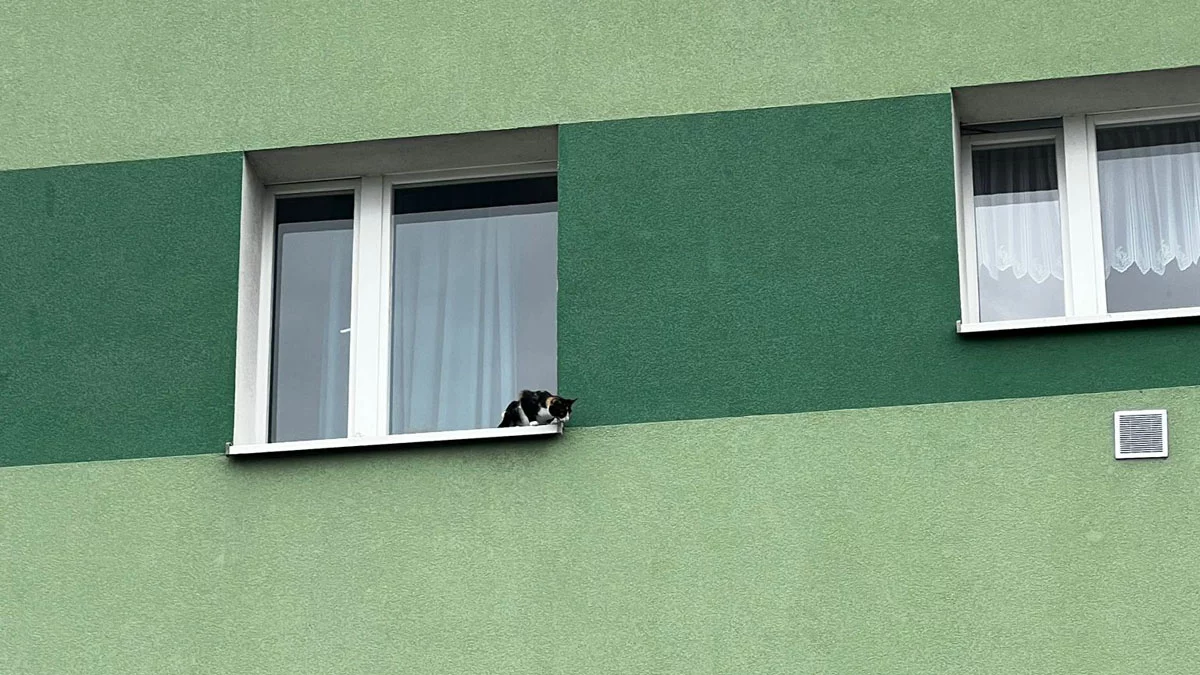 Działo się to w środę 28 maja 2025 roku, na osiedlu 1000-lecia w Gostyniu. Funkcjonariusze straży miejskiej otrzymywali od mieszkańców informacje, że na drugim piętrze jednego z bloków na parapecie stoi bardzo wystraszony kot i miauczy. Na placu przed budynkiem zaczęli gromadzić się inni lokatorzy.