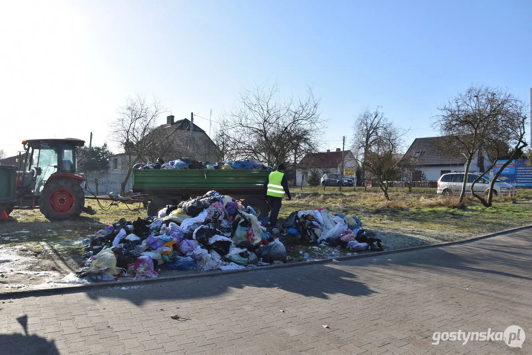 Przez miesiące przy kontenerach na odzież używaną, wyrzucający tam śmieci mieszkańcy „zbudowali” górę odpadów, która stwarzała zagrożenie pożarowe (np. wzniecenie pozaru przez niedopałek papierosa) lub epidemiologiczne. Wywieziono w sumie na 4 przyczepach. Śmieci trafiły do ZWiK, tam zostaną przesegregowane na odpowiednie frakcje. Większość trafi do PSZOK-u, byc może jakas cześć zostanie zutylizowana. Koszty związane z uporządkowaniem działki przy drodze wjazdowej do Dino, a także z odstawieniem odpadów komunalnych do punktu selektywnej zbiórki, pokryją współwłaściciele terenu. Komendant straży miejskiej zapewnia, że gmina nie straci przy tej akcji ani złotówki.