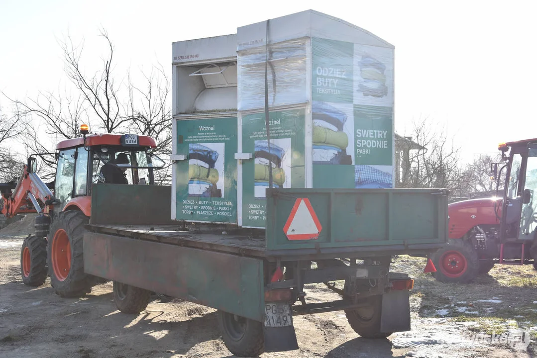 Kontenery na odzież używaną, przewiezuiono do ZGKiM w Gostyniu. Tam czekają na właściciela.